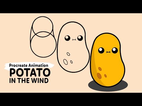 Procreate Animation Time Lapse: POTATO IN THE WIND - Cartoon Cute Potato Wallpaper